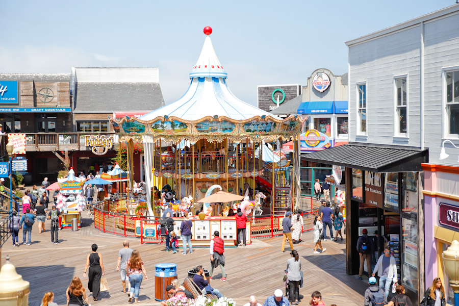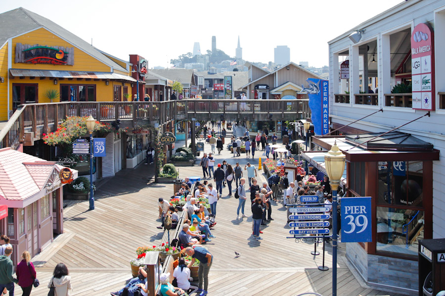 Ein Teil von Fisherman’s Wharf ist das Pier 39 das eine ehemalige Bootsanlegestelle war und heute eine beliebte Touristenattraktion in San Francisco ist. Es gibt dort einen ganzjährigen Rummel, Souvenir Shops, Fahrgeschäfte, Restaurants und das Aquarium of the Bay. Vom Financial Distrikt kann man gerne entlang der Promenade bis zum Pier 39 laufen (Dauert knapp 30 Minuten) oder mit der Strassenbahn wenige Station fahren (ca. 8 Minuten). Wer den CITY PASS hat, kann hier einige Attraktionen, wie das Aquarium umsonst besuchen. Für den Besuch am Pier sollte man schon 3-5 Stunden einplanen, sofern noch eine Tour mit dem Boot dazu kommt. Auch die berühmte Belichtung zum Alcatraz Gefängnis kann man von her aus starten. TIPP: Hier im Voraus buchen, da die Touren sehr beliebt sind und oftmals am gleichen Tag bereits ausgebucht sind. Ihr findet auch anderen Touren mit dem Boot, die nur knapp 1-2 Stunden dauern und stündlich verkehren. Diese sind meist bis zur Golden Gate Brücke und entlang der Küste auch sehr sehenswert.