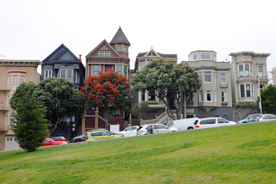 Diese beiden Attraktionen lassen sich gut verbinden. Zuerst zum Alamo Square , der zu den beliebtesten Parks San Franciscos zählt. Er liegt zwischen der Hayes-, Steiner-, Fulton- und Scott Street. Von hier aus hat man einen tollen Ausblick auf die bunten viktorianischen Häuserreihen. Der Kontrast zwischen der kleinen Parkanlage, den Painted Ladies und den Wolkenkratzern im Hintergrund ist überwältigend. Das beste Licht um die Schönheit der bunten Häuser einzufangen ist nachmittags, wenn das Licht der untergehenden Sonne die Häuserreihe beleuchtet. Von hier aus mit dem Bus bis zum Eingang des Golden Gate Parks. Für diesen Park sollte man jedoch mehrere Stunden einplanen. Deutlich größer als der Central Park in New York – der Golden Gate Park erstreckt sich über fünf Kilometer von Ost nach West und über 800 Meter von Nord nach Süd. Ich bin gelaufen und habe daher natürlich nur einen Bruchteil gesehen. Viele Museen und Sehenswürdigkeiten befinden sich im Golden Gate Park: Conservatory of Flowers, Botanical Garden, de Young Museum, Asian Art Museum und California Academy of Sciences. Für eine dieser Sehenswürdigkeiten muss man jedoch Eintritt bezahlen (der Eintritt in den Park ist kostenfrei. Ein beliebter Ort um sich in dem Golden Gate Park zu entspannen ist der Japanese Tea Garden. Es ist der älteste japanisch Garten der Vereinigten Staaten. Für eine kleine Aktivität bietet der See auch einen Verleih von Trett- und Ruderbooten.