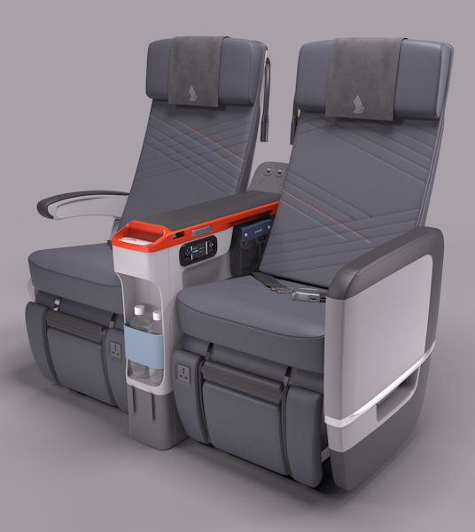 Die Premium Economy Class begrüßt Fluggäste mit einem maßgeschneiderten, modernen und stilvollen Design, das mehr Raum, Komfort und Annehmlichkeiten bietet. Der Sitzabstand beträgt 95 cm. Jeder Sitz hat eine Breite von 47 – 49,5 cm. Die Rückenlehne kann für mehr Komfort und Bequemlichkeit um bis zu 20,3 cm verstellt werden. Zum Sitz gehört ein 33 cm großer Full-HD-Bildschirm, der größte in dieser Klasse angebotene Bildschirm. Hergestellt werden die Sitze vom deutschen Unternehmen ZIM Flugsitz GmbH.