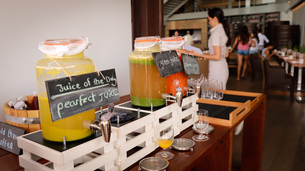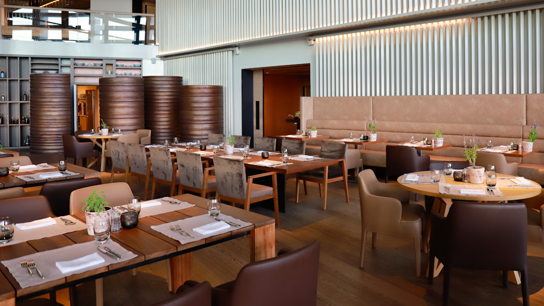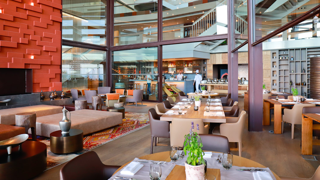 Das Hauptrestaurant mit einer Bar und einer fantastischen Auswahl an frischen Köstlichkeiten zum Frühstück, Lunch und Abendessen. Platziert auf Ebene 1. Auch gibt es einen privaten Dining-Room mit Platz für bis zu 12 Gästen. Frische Säfte, Glutenfreies Gebäck und viele leckere lokale Spezialitäten sind hier zu finden.