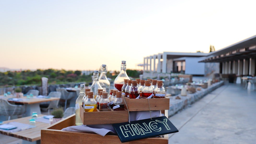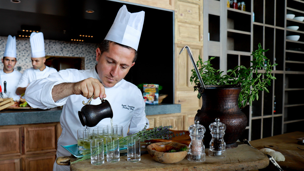 Die Ägäische und Mediterrane Küche dominieren – köstlich beeinflusst von den Gewürzen und Aromen der Türkischen Küche. Alle Zutaten kommen direkt aus dem eigenen Biogarten oder von Anbietern aus den umliegenden Dörfern. Von Bauern, Fischern und vom Markt. Frisch und saisonal. Passend zum Eat with Six Senses Konzept. Insgesamt haben die Gäste eine Auswahl zwischen vier verschiedenen Restaurant & Bars. Die Gäste können zudem an einem Kochkurs teilnehmen und die Köche bei der Arbeit beobachten.