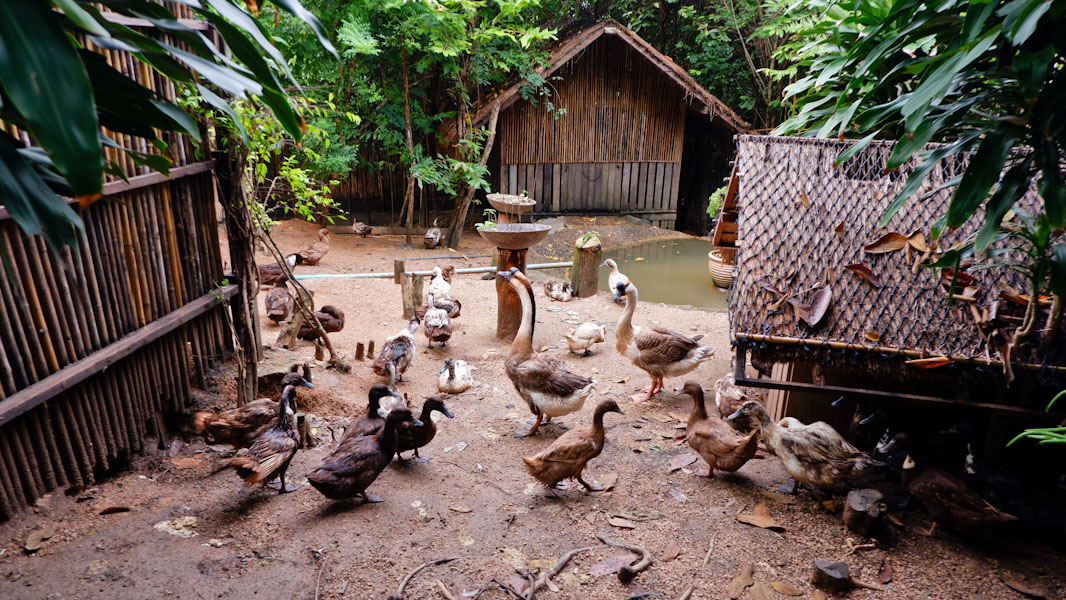 Ein rundum stimmiges Konzept, das sich zur Nachahmung in aller Welt empfiehlt: Ökologisch produzierte Lebensmittel landen täglich frisch geerntet in der Resort-Küche. Der eigene Biobauernhof beschäftigt als Arbeitgeber weitere Mitarbeiter vor Ort. Der im Hotelalltag entstehende Biomüll kommt als Kompost der Farm zu Gute.Mit der Farm on the Hill geht das Six Senses Samui weitere Schritte hin zu mehr Ökologie. Das thailändische Luxusresort der auf Nachhaltigkeit bedachten Six Senses Hotels Resorts Spas entwickeltedie Idee, weil nach Gartenarbeiten ungewöhnlich viel Grünabfall anfiel. Die Farm on the Hill bedeutet nicht nur einen durchdachten Schritt in die richtige Richtung, sondern macht den Gästen aller Altersstufen großen Spaß: Beim Füttern der Ziegen, Einsammeln der frisch gelegten Eier oder der eigenen Gemüseernte kommen die Gäste in unmittelbaren Kontakt mit den Lebensmitteln, die auf ihrem Teller landen. Die Begeisterung des Farmteams wirkt ansteckend und verschafft besonders so manchem großen und kleinen Stadtkind wertvolle, neue Erlebnisse. Wer möchte, kann die Farm für ein Abendessen sogar ganz für sich alleine buchen oder eine private Sunset-Tour durch die Anlage absolvieren, bevor der Grillabend beginnt. Neben frischem Gemüse liefert die hauseigene Produktion tagtäglich Bioeier und frische Ziegenmilch. Für die Farm benötigte man 15 bis 20 Ziegen, 80 Hühner und eine Wasserzisterne; das benutzte Wasser durchläuft zur Reinigung und Remineralisierung einen Schilfrohrfilter und dient danach der Bewässerung – eine kreative Methode, um den Garten zu gießen und gleichzeitig den Schilfabfall einem sinnvollen Zweck zuzuführen. Durch den kompostierten Biomüll lässt sich die Erde gut aufwerten. Das Projekt fand inzwischen schon erste Nachahmer in der Nachbarschaft: Es hat das ganze Team und die Bewohner vor Ort inspiriert, einige der Idee nun auch bei sich zu Hause umsetzen. Schön, wenn man mit gutem Beispiel zum Vorbild für ökologisches Handeln werden kann.