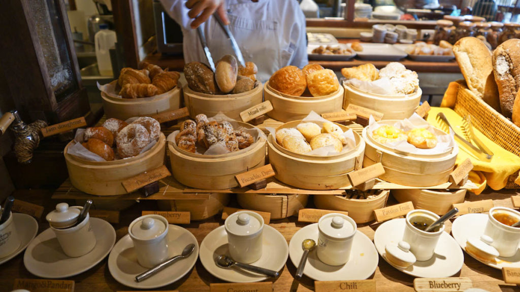 Am Tisch angekommen bekommt man eine Karte mit verschiednen Eierspeisen, die dann zubereitet werden. In der Zwischenzeit bedient man sich an den verschiedenen Anrichten und Köstlichkeiten. Meine erste Wahl fiel auf ein Thai Omelett und anschließend das erste Mal im Leben auf die Eier Benedikt (diese gibt es in der regulären Variante mit echtem Schinken und als italienische Variante mit Serano Schinken).