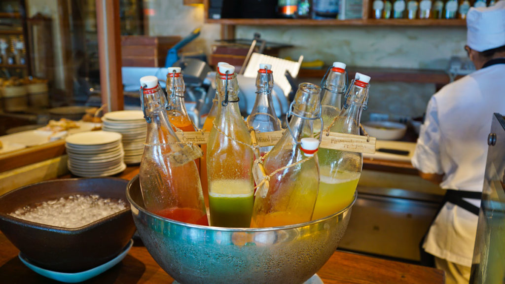 Das absolute Highlight folgte jedoch zum Frühstück. Ich bleibe fest bei der Aussage: Es war das beste Frühstück, dass ich jemals gegessen habe. Warum ? Mein Frühstück beschränkt sich in der Regel auf einen frischen Saft, Müsli eine Eierspeise nach Wahl und einem starken Kaffee. Tatsächlich bekommt man in den Hotel der gehobenen Klasse immer frische Sachen und alles ist wunderbar angerichtet. Hier war die Auswahl ähnlich, jedoch die Auswahl der Eierspeisen etwas himmlisches und der grüne Saft ohne Namen ein Zaubertrank.