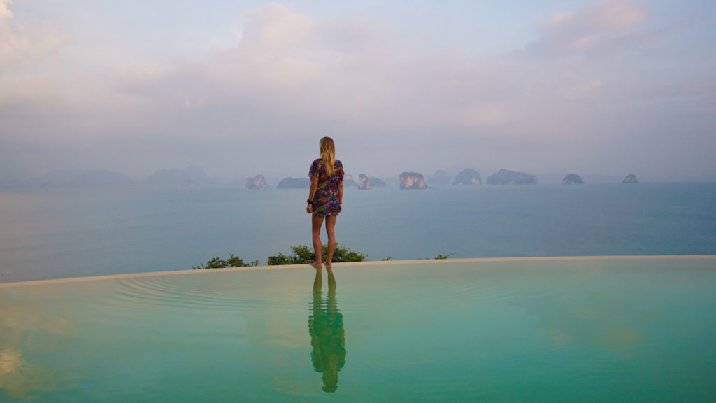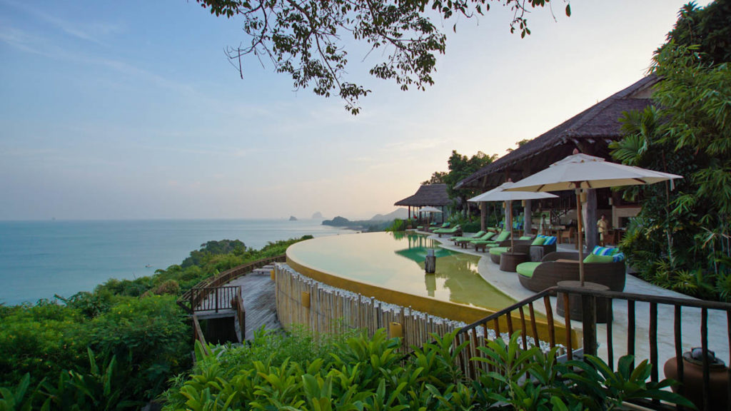 Der Pool befindet sich am höchsten Punkt des Resorts und man kann teilweise bis Krabi gucken. Die wunderschöne Felsenlandschaft erstreckt sich über die gesamte Sicht und das Bild ist ähnlich wie in einem Kinofilm.