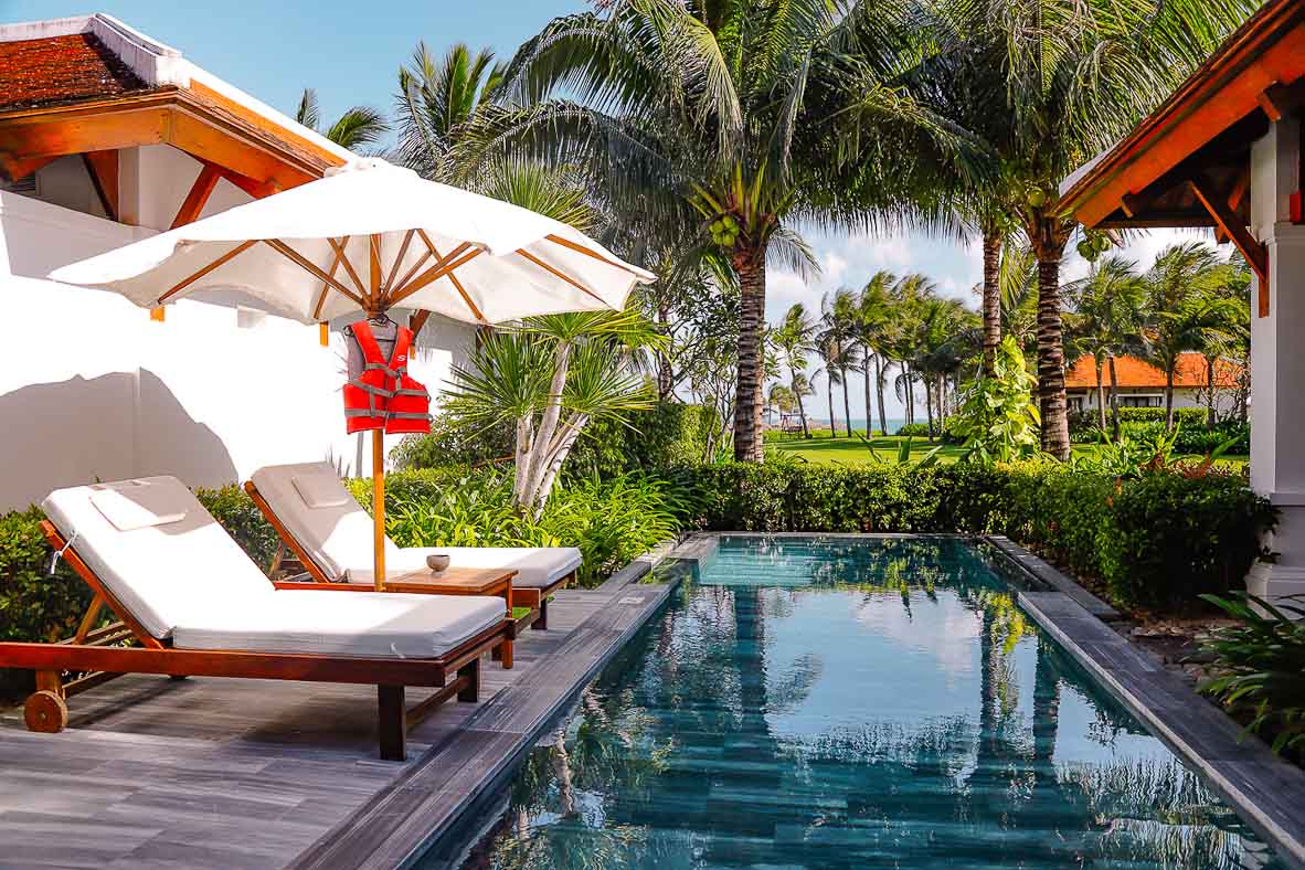 The Anam liegt nördlich von Cam Ranh und direkt am weißen Sandstrand. Die Berge im Hintergrund sind mit dichtem Dschungel bedeckt und bilden einen wunderschönen Kontrast. Mit 300 Sonnentagen im Jahr und einem traumhaften Strand ist das The Anam ein neuer Hotspot für alle, die das Besondere suchen. Es verspricht viel und hält es auch.