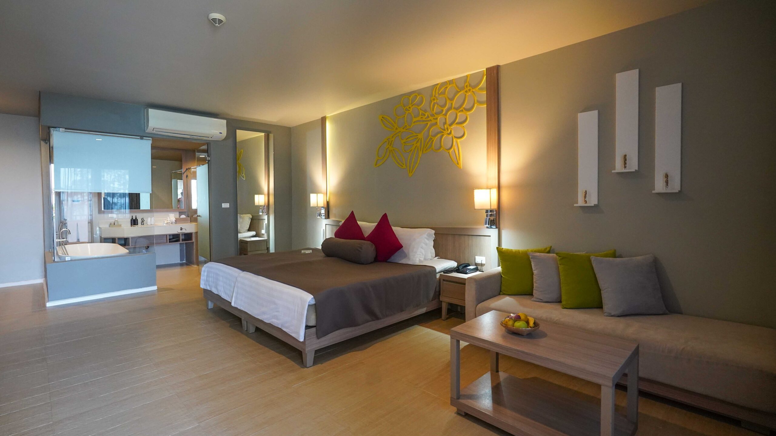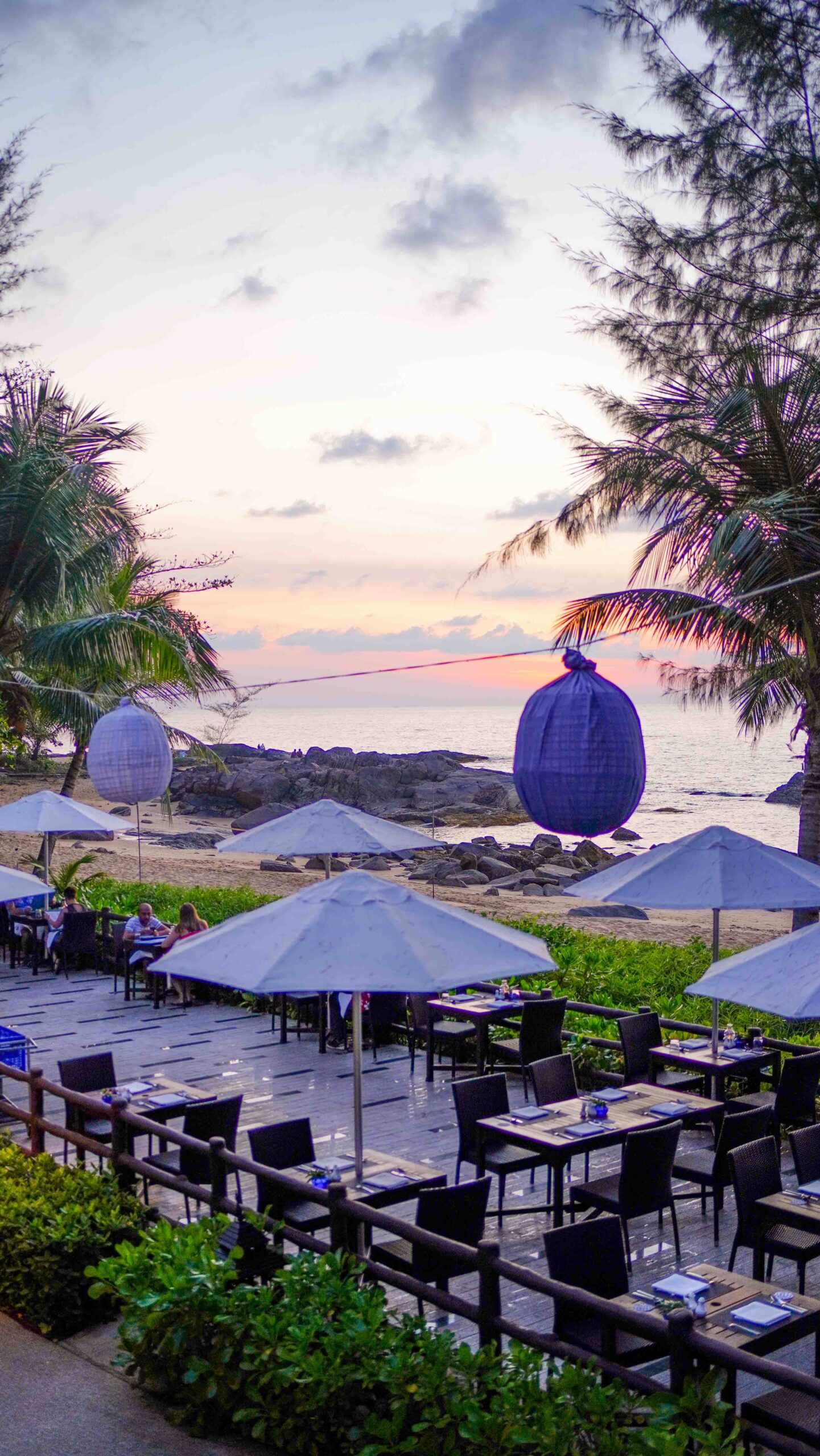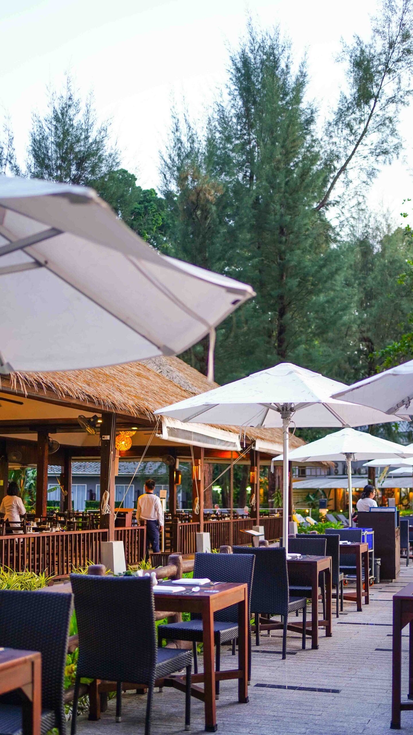 Am Strand erwartet einen ein großes und halb offenes Restaurant, in dem sowohl zum Frühstück als auch zum Mittag und Abendessen aufwendige Buffets bereitstehen. Das Restaurant bietet zudem einen traumhaft schönen Strandblick an – so schmeckt das Frühstück noch besser. Auch das landestypische Essen kann sich sehen lassen und kann geschmacklich mit den lokalen Restaurants mithalten. Am Abend ab 18 Uhr kann man im Restaurant Culinarium traditionelle Thai-Küche probieren. Das Küchenteam legt Wert auf regionale und saisonale Zutaten. Neben den gastronomischen Einrichtungen bietet das Hotel ein modernen Fitnessbereich, den man für das individuelle Training nutzen kann. Für eine ausgiebige Massage und eine wohltuende aromatherapeutische Anwendung bietet der Spa-Bereich des Hotels viele Anwendungen auch im Freien mit dem Rauschen des Meeres.Der Strandbereich ist ebenfalls in zwei Bereiche aufgeteilt. Links und rechts vom Restaurant findet man jede Menge Sonnenliegen in erster und zweiter Reihe, die untern den Palmen angenehmen Schatten spenden.