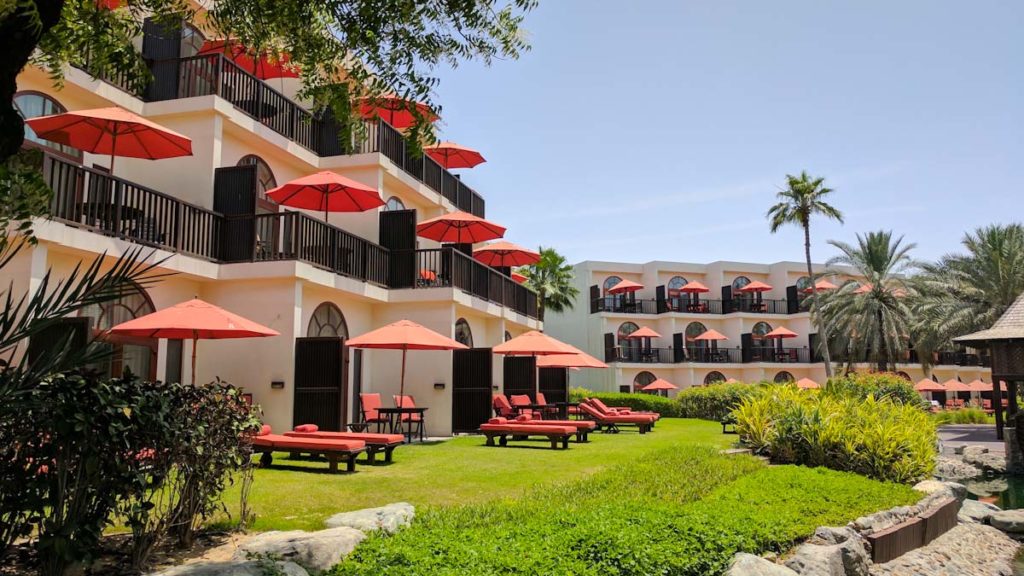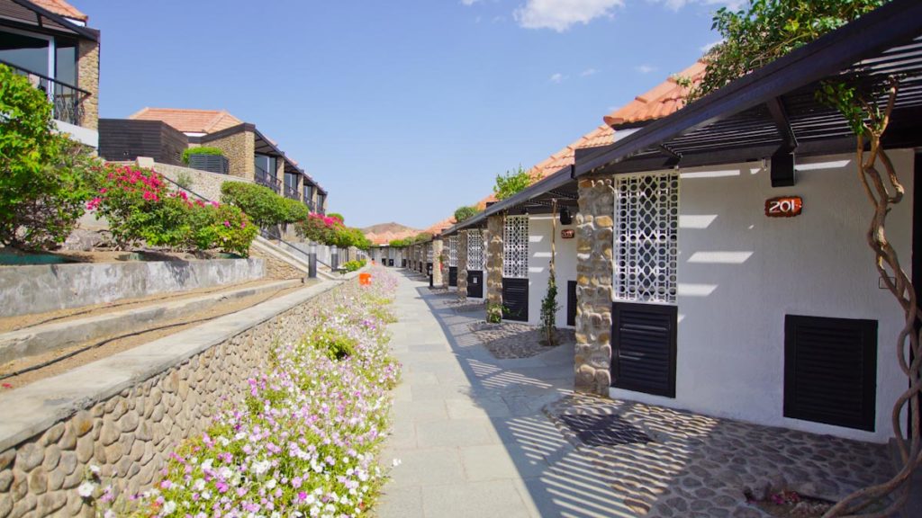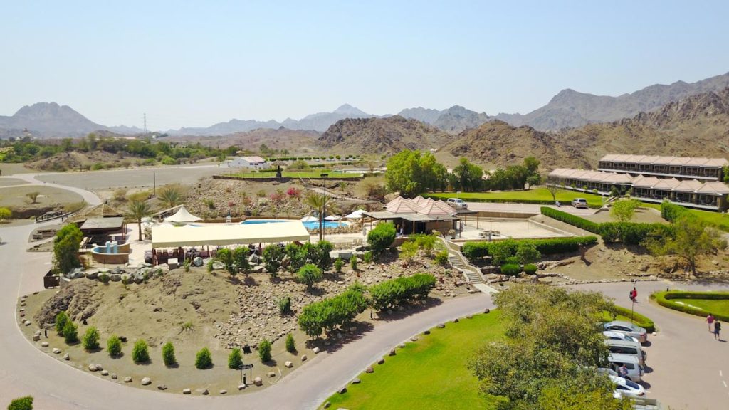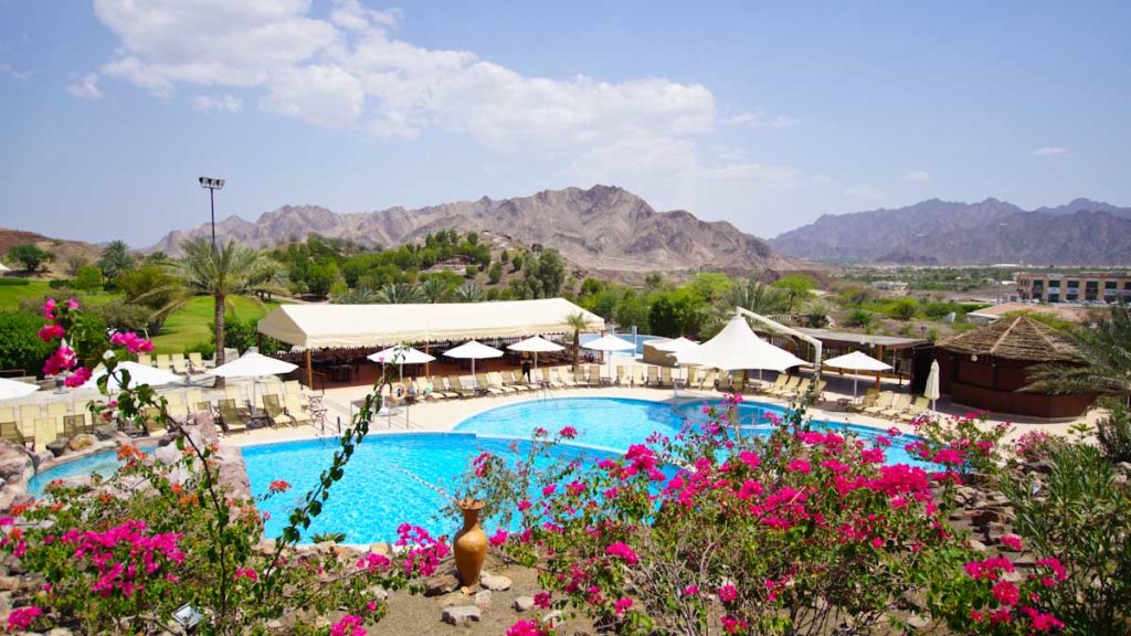Bereits bei der Ankunft zeigt sich das Resort in bester Umgebung. Umgeben von den Bergen, inmitten von einer grünen Oase. Hier scheint die Zeit still zustehen und der Anblick könnte nicht besser sein. Auf einem knapp 33 Hektar großen Gartenareal, umgeben von den mächtigen Bergen des Hajar Gebirges und wilder Natur, ist dieses 4,5 Sterne Hideaway in Dubai der ideale Ort für einen gelungenen Urlaub.