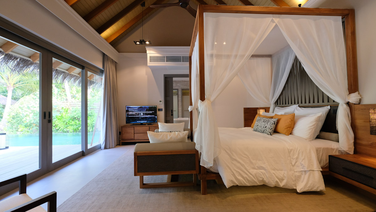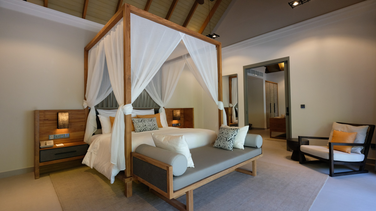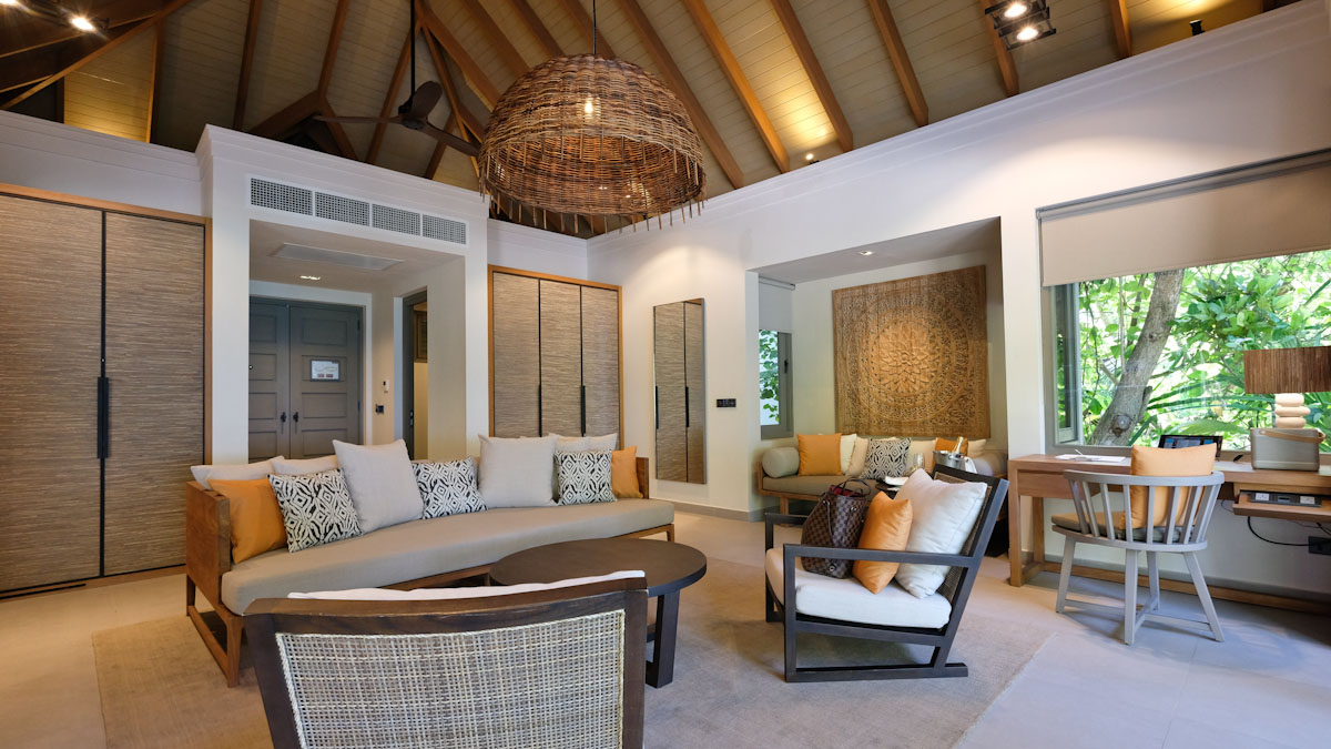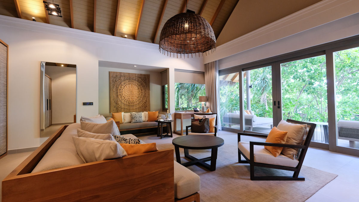 Die Beach Bungalows, Over Water Villen oder Deluxe Beach Pool Suiten haben eine Größe von 114-917 Quadratmetern. Sie sind mit jeglichem Komfort ausgestattet und verfügen teilweise über einen eigenen Pool.Die Villen verfügen alle eine private Terrasse oder ein Sonnendeck, Sonnenliegen und Yogamatten, Safe, Minibar, Tee-/Kaffeezubereiter, WLAN und einen kostenfreien Butlerservice.