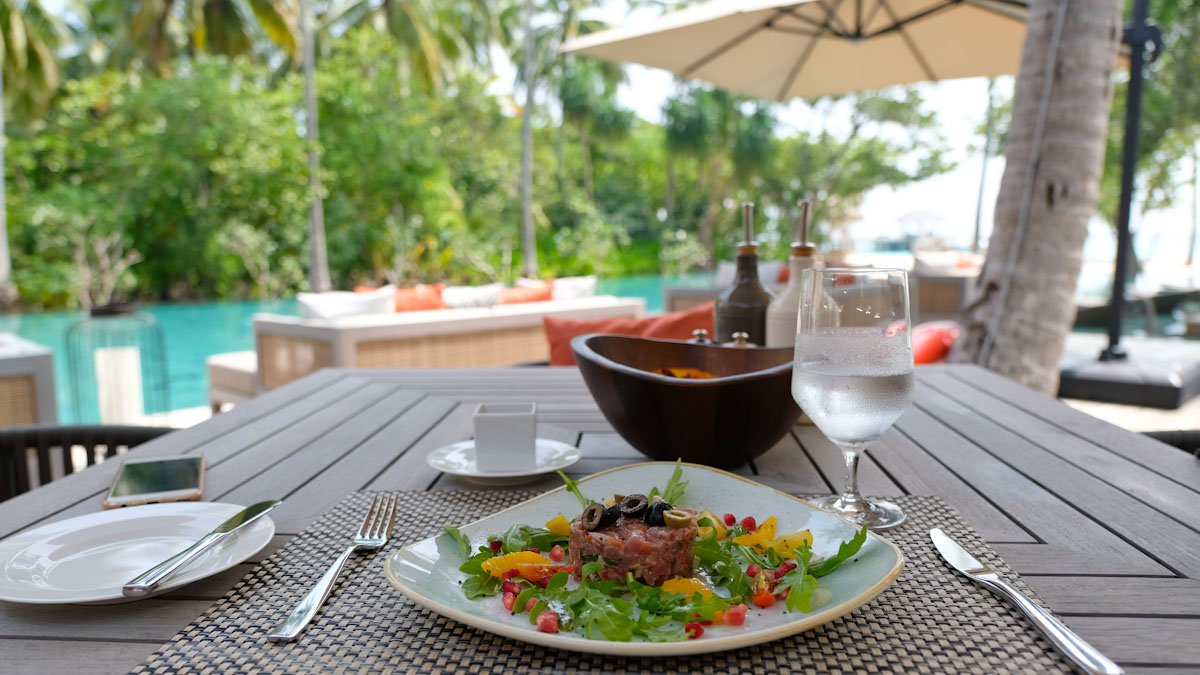 Das „Isoletta“ bietet den Gästen zum Lunch und Dinner köstliche Speisen der italienischen Küche an.  Mit einem Blick  auf den Pool kann man hier leger das Mittagessen geniessen. Für einen eleganten Abend verschlägt es die Gäste in das Restaurant „Vakku“, welches insbesondere Delikatessen der leichteren Küche, wie Meeresfrüchte oder Fisch anbietet. Eine gut gefüllte Menükarte wird jedoch keinen Gast hungrig zu Bett gehen lassen.  Wer gerne die Spezialitäten der Asiatische Küche probieren möchte, ist im Restaurant „Onu“ zum Dinner herzlich willkommen. Alles in einem eine perfekte Mischung und genug Abwechslung für jeden Gaumen. Für eine Stärkung zwischendurch stehen den Gästen zusätzlich zwei Bars zur Verfügung.