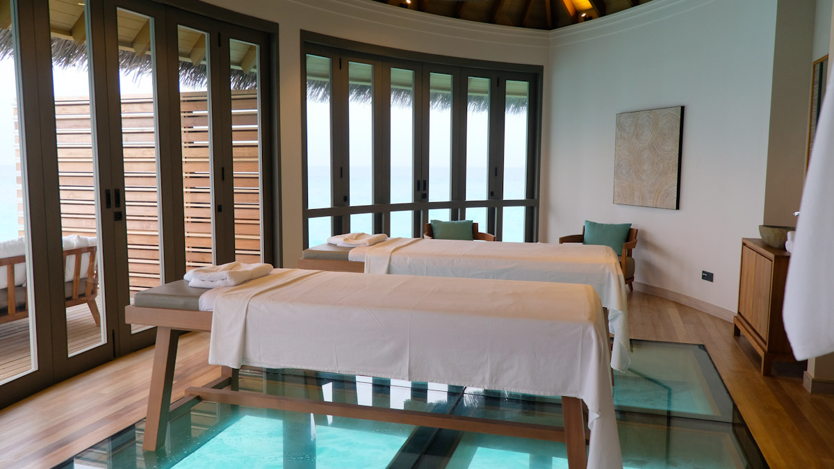 Eine Vielzahl an wundervollen Massagen und wohltuenden Wellness- und Schönheitsbehandlungen mit Blick auf den Ozean erwarten die Gäste in einem luxuriösen Over Water Spa Bereich.