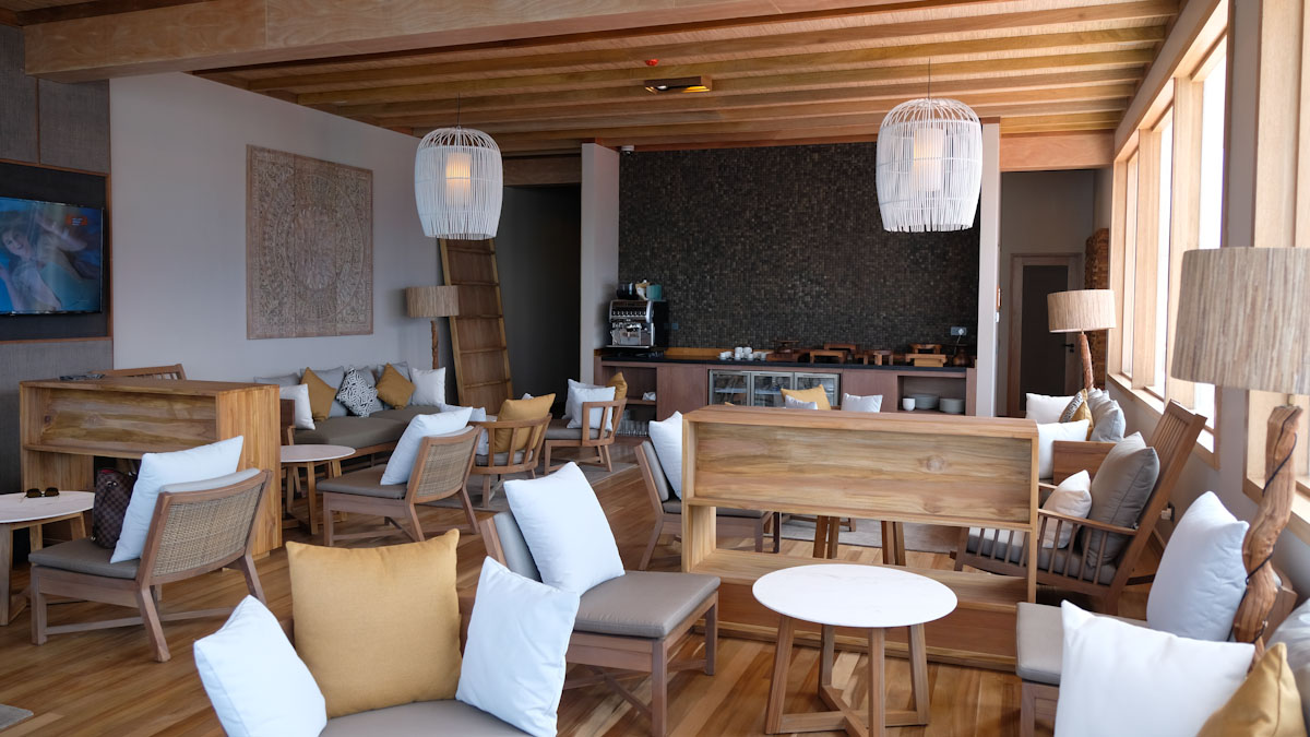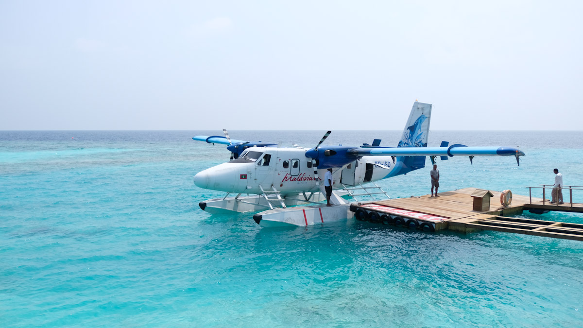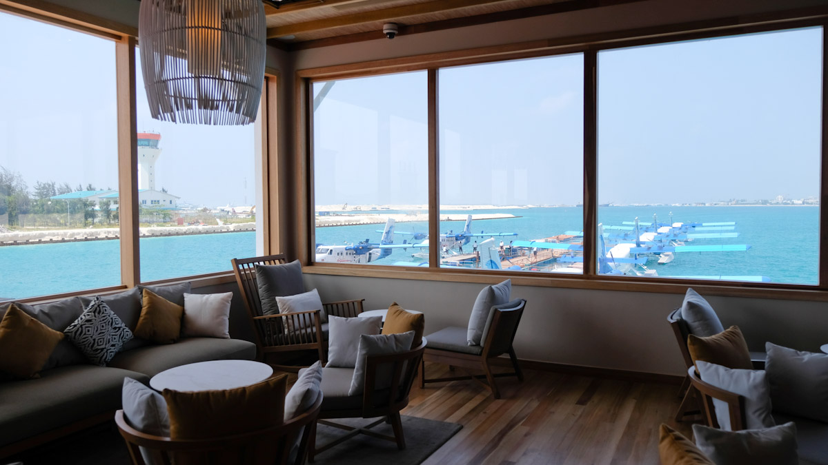Vom Flughafen Malé aus erreicht man die Insel auf dem Baa Atoll mit dem Wasserflugzeug in 25 Minuten. Der Flug bietet wie immer eine atemberaubende Aussicht über den Ozean und die üppige Vegetation des Resorts.   Am Flughafen von Male angekommen dürfen die Gäste die Zeit bis zum Abflug in der Resort eigenen Lounge verbringen und die erste Aussicht geniessen. Die Lounge hat einen direkten Ausblick auf den Landeplatz der Wasserflugzeuge und bietet in der Ausstattung eine gemütliche und moderne Atmosphere.