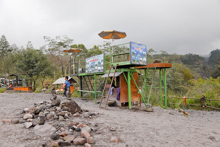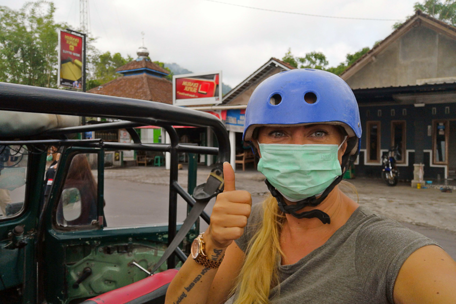 Über eine sehr holprige Offroad-Straße fährt man am Fuße des Merapi entlang. Es ist beeindruckend wie friedlich er vor einem liegt, wie unschuldig er aussieht und wie seine Spitze von Wolken umhüllt wird. Ein erster Stopp ist an einer Art Ausstellung oder Stätte mit Andenken. In dem Haus sind Gegenstände ausgestellt, die man in der Asche gefunden hat – darunter zum Beispiel Kleidung, ein Motorrad und andere alltägliche Dinge. Das Highlight ist eine Wanduhr, deren Zeiger noch die Uhrzeit der Eruption anzeigen. Der nächste Stopp führt weiter über die holprige Strasse zum Bunker und zum „Alien Rock – ein großer Felsbrocken, der bei der Eruption 2010 von der hinab fließenden Lava einige Kilometer weit getragen wurde. Der Bunker hat leider eine eher traurige als schützende Geschichte zu erzählen. Die Menschen versuchten sich nach Ausbruch des Vulkans im Bunker zu retten, und wurden von Trümmern des Ausbruchs des Merapi-Bergs eingeschlossen. Sie waren mit bis zu 2 Meter mit Asche bedeckt worden. Die Temperatur der Asche lag bei ca. 300 Grad. Der Bunker wurde somit zu einem Lava Gefängnis für die Schutzsuchenden.