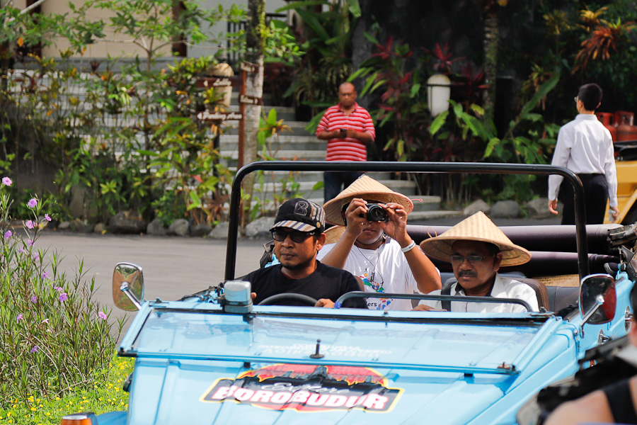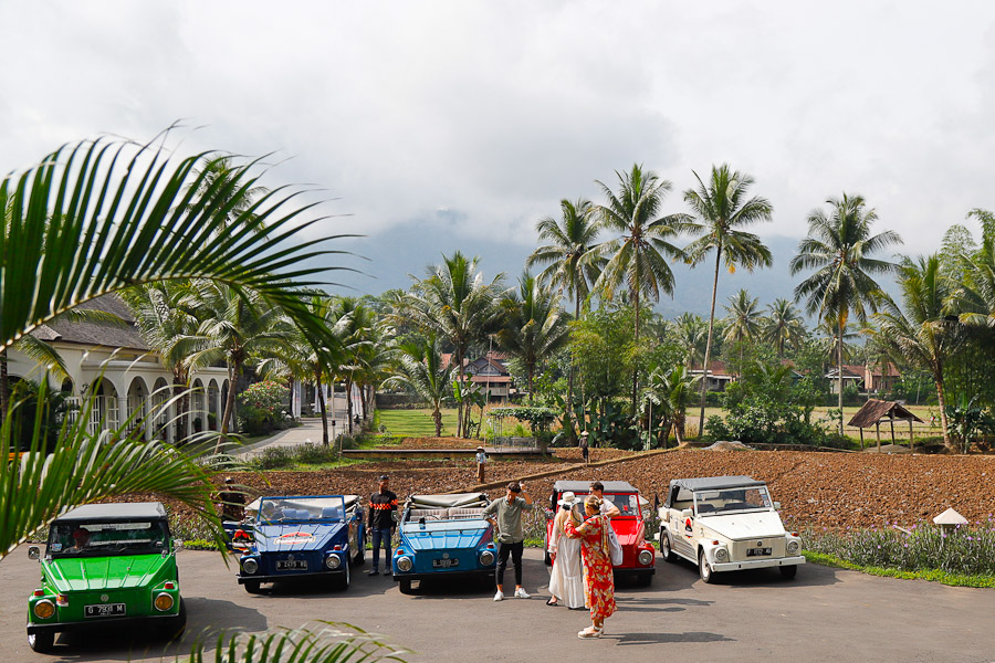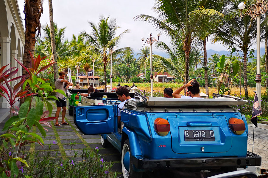 Eine Reise in die Vergangenheit ? Nein, eine Reise durch die schönen Dörfer und Reisfelder erwarten die Besucher der nostalgischen VW Tour mit einem großen Erlebnisfaktor. Pro Auto liegen die Kosten bei ca. 21 Euro – dieses hängt ein wenige von der Route und Dauer ab. Die Autos, die hier für die Touren benutze werden, sind ältere Volkswagen 182, welche als kleines Militärfahrzeug für Deutschland während des Zweiten Weltkriegs hergestellt wurde. Der einzigartige Wert des Autos ist jedoch immer noch hoch und viele Menschen nutzen dieses einzigartige Element des Autos. Dieses einzigartige Safarifahrzeug ist Teil des Pakets „Explore Borobudur“. Hier kann man die umliegenden Dörfer des Borobudur-Tempels erkunden. Als neues Symbol für die Region können Touristen diese Aktivität zu Ihrer Reiseroute hinzufügen, um ein einzigartiges Erlebnis zu erhalten, wenn Sie den Borobudur-Tempel und seine Umgebung erkunden möchte. Bei einer Gruppe geht es in einer Kolonne langsam an saftig grünen Reisfeldern über einfache Dörfer hinweg. Ein absolutes Highlight und sehr empfehlenswert. Tipp: Kopfbedeckung und genügend Sonnenschutz mitnehmen.