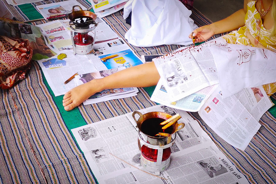 Ein letzter Stopp zum Mittagessen und einigen traditionellen Highlight wie dem Töpfern oder alten traditionellen Kunstart : Batik. Gegessen wird selbstgemachte lokales und sehr köstliches Mittagessen aus den Zutaten der Region wie z.B. Bananensalat und Süsskartoffeln. Als Unterlage gibt es passend für Ausgestellt auch ein Bananenblatt. Gemütlich nach dem Essen nur wenige Schritte entfernt kann man die Kunst des Töpfern erlernen oder die zauberhaften Küste der Batik Tradition ausprobieren. Batik ist eine beliebte Kunst in Südostasien. Die bekannteste Art stammt aus Indonesien und wird auch heute noch ausgeübt. Bei der Technik wird ein Muster auf dem Stoff entworfen, indem Wachs aufgetragen wird, das gegen Farbstoffe resistent ist. Dann wird der Stoff gefärbt, das Wachs wird mit heißem Wasser abgewaschen und der negative Raum wird zum Design. Es ist nicht sehr einfach, aber es macht Spaß und lohnt sich mal auszuprobieren.